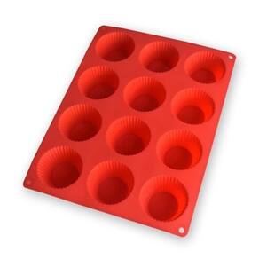 Forma Cupcake Silicone 12 Cavidades Cor: Vermelho Forma Silicone Cupcake Empada 12 Cavidades