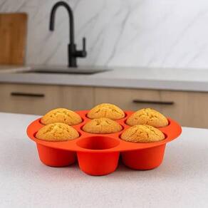 Forma de silicone flexível, durável e resistente a altas temperaturas. Material antiaderente para fácil desenformar. Pode ir à lava-louças, freezer, micro-ondas e forno convencional. Compacta e leve.Chapa antiaderente