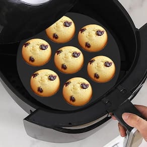 Forma de silicone para Air Fryer, ideal para cupcakes, bolinhos, pães de queijo, mini pudins e sobremesas geladas. Material antiaderente, flexível, durável e resistente a altas temperaturas. Pode ir à lava-louças, freezer, micro-ondas e forno convencional.Chapa antiaderente