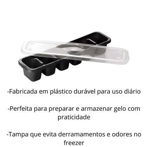 A Forma de Gelo com Tampa 180ml é a solução perfeita para preparar e armazenar cubos de gelo de forma higiênica e prática. Com capacidade total de 180ml, possui design compacto que economiza espaço no congelador e é ideal para uso doméstico ou em pequenas reuniões. A tampa protetora evita respingos, odores e contaminações, garantindo cubos de gelo mais limpos e seguros para suas bebidas. Fabricada em plástico resistente e flexível, facilita desenformar o gelo e oferece maior durabilidade. Prática, fácil de limpar e eficiente, é indispensável para manter suas bebidas sempre geladas com qualidade e conveniência. Especificações: - Marca: Plasutil; - Modelo: 013950; - Com Tampa: Sim; - Capacidade: 6 pedras de gelo; - Volume: 180ml; - Cor: Preto, transparente; - Dimensões: 22,5 x 5,5 x 4 cm; - Material: Polipropileno; - Recomendações: Evitar utensílios pontiagudos para retirar os gelos, pois podem danificar a forma; - : 3 meses 90 dias . Conteúdo da embalagem: -01 Forma de Gelo com Tampa 180ml. Marca: Não Informado Ean: 7899808875384