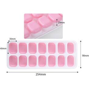 Especificações de cada forma: - Material: Silicone rígido com fundo flexível. - Formato: Retangular. - Quantidade de cavidades: 14 cubos.
