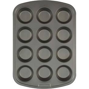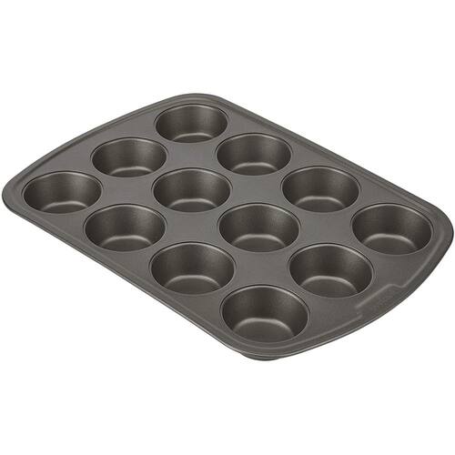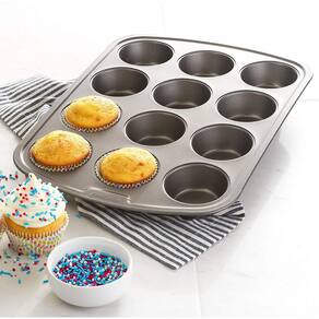 Forma de muffin de aço antiaderente GoodCook Everyday, 12 xícaras, cinza