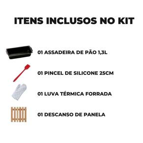 Forma De Pão Média 1,3L + Luva + Pincel + Descanso De Panela
