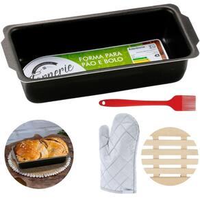 Forma De Pão Média 1,3L + Luva + Pincel + Descanso De Panela