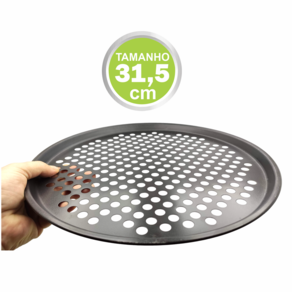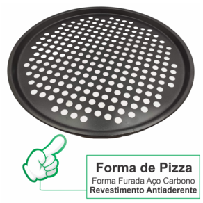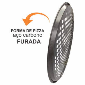 FORMA DE PIZZA ANTIADERENTE FURADA AÇO CARBONO