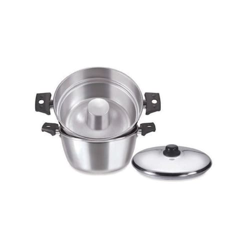 Forma de Pudim Banho Maria Polida Forma de pudim banho maria com tampa, confeccionada em alumínio, fabricada pela Indústria de Alumínios Eirilar. Acabamento externo polido. Alças e pomel confeccionados em baquelite, que resistem ao calor propagado pelas paredes da forma ao serem levados ao fogão.