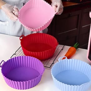 Forma de Silicone para Air Fryer Fritadeira Elétrica Forma Silicone Air Fryer Reutilizável Protetor Microondas ===================================== Contém: 01 Unidade Especificações: - Material: Silicone - Medida: 20cm x 6,5cm - Reutilizável: Sim - Capacidade: 1,5 litros - Livre de BPA - Sulcos para Melhor Circulação de Ar - Com Alça: Sim - Não ter contato direto com fogo, nem objetos cortantes - Temperatura indicada -40ºC até 230ºC - Indicada para lava louças - Cor enviada de forma aleatória conforme disponibilidade em ===================================== Devido à diferença entre monitores e iluminação diferentes, pode haver variação na tonalidade apresentada no anúncio. Medidas muito aproximadas. Marca: Não Informado Ean: 6013400038171