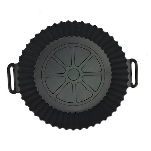 Forma de silicone para airfryer antiaderente reutilizavel Cor: Vermelho Especificações do produtoMaterial: Silicone livre de BPADimensões: 17,5cm x 17,5cm x 05cmPeso: 100g aprox. Resistente a temperaturas de -40ºC até 230ºCNão ter contato direto com fogo nem objetos cortantesReutilizável e fácil de limparAdequado para uso em air fryer, micro-ondas, panela elétrica e forno