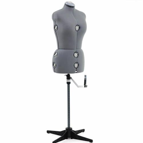 SINGER Formato de vestido cinza ajustável para tamanhos 10-18 com manequim fixável com guia de bainha de 360 graus, exterior de tecido com revestimento de espuma, 12 mostradores, suporte triplo