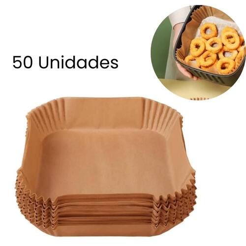Características: Forma descartável 50un para air fryer quadrada antiaderente - tornando suas refeições ainda mais práticas