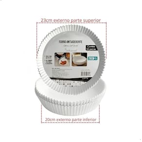 Forma de papel descartável redonda para air fryer, resistente a temperaturas de até 200ºC, antiaderente, sem óleo, ideal para preparar alimentos fritos de maneira saudável.Vendido por HIMAWARI STORE e entregue por Casas Bahia