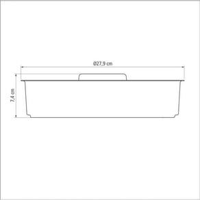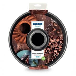 Forma Fundo Removível Tramontina Alumínio 26cm 3,3l Grafite A linha é fabricada em alumínio com antiaderente Starflon. São formas e assadeiras dos mais diferentes modelos para você soltar sua imaginação e cozinhar com praticidade. Recomendações de Uso: Antes do uso: Antes de utilizar o , remova as eventuais etiquetas e lave-o com água quente e de uso: Lave interna e externamente a assadeira, usando apenas uma esponja macia, sabão neutro ou detergente líquido. Enxugue bem com um pano seco e unte todas as partes internas com óleo ou gordura. Leve ao fogo baixo por um ou dois minutos. Deixe a peça esfriar, lave e enxugue novamente. Durante o uso evite esquentar demais a assadeira vazia. Use a sua assadeira Starflon sempre em fogo baixo ou médio para reter o valor nutritivo dos alimentos e conservar o antiaderente. Evite que as chamas atinjam as laterais do assadeira. A assadeira com antiaderente não pode ser aquecida a temperaturas superiores a 350C. Para mexer ou tirar o alimento, use somente utensílios de silicone, nylon ou madeira que não cortam e não riscam a superfície dos produtos Starflon. Nunca corte alimentos diretamente no revestimento ós o uso: Evite a imersão da assadeira quente em água fria. Deixe a assadeira esfriar antes de lavar. Mesmo depois de vários usos nunca utilize produtos abrasivos na lavagem da sua Starflon, como saponáceos ou palhas de aço. Se deixar queimar alimentos, deixe seu produto de molho em água durante algum tempo antes de lavá-lo. O seu produto Starflon pode ir à máquina de lavar louç utilizar utensílios mantenha fora do alcance de crianças. Ao manusear utensílios quentes tenha cuidado redobrado e se necessário utilize proteção para as mãos. Para sua maior ao utilizar utensílios com cabos, mantenha os mesmos sempre voltados para o centro do fogão. Informações Adicionais: