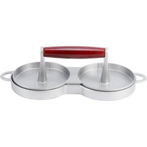 Forma Hambúrguer Dupla Prensa Modeladora Alumínio Cabo de Madeira
