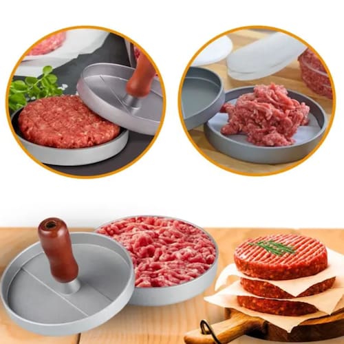 Produto de fácil manuseio, o modelador possui duas peças em um você coloca a carne e o outro serve para pressionar e dar o formato , ele ainda possui pequenos frisos que ajudar a carne e ter uma cocção perfeita.