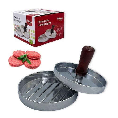 Forma molde para hambúrguer caseiro artesanal 12 cm Apresentamos o prático e funcional molde para hambúrguer de 12cm. Este molde é perfeito para preparar deliciosos hambúrgueres artesanais caseiros e deixá-los com uma aparência profissional. Com a carne já temperada, basta colocar uma porção na forma e moldá-la na espessura desejada. Você pode criar hambúrgueres suculentos e de diversos tamanhos, seja um hamburgão generoso ou um smash burger. Feito em alumínio, este molde garante durabilidade e resistência, além de facilitar a limpeza. O alumínio evita a transferência de odores ou sabores de outros alimentos, mantendo o sabor autêntico do seu hambúrguer. O molde possui um cabo em madeira, que facilita o manuseio e oferece conforto durante o processo de moldagem. Especificações: -material: alumínio-dimensões: 12cm de diâmetro-cabo em madeira O kit contém:-01 molde para hambúrguer de 12cm Não deixe de adquirir este molde para hambúrguer e elevar a qualidade das suas criações culinárias. Clique no link abaixo e adquira o molde para hambúrguer de 12cm agora mesmo