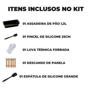 Forma Pão 1,3L + Luva + Pincel + Espátula + Descanso Panela