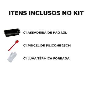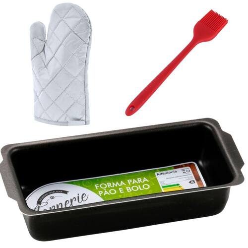 01 Forma de Pão 1,3L 01 Pincel Culinário de Silicone 01 Luva Térmica de Cozinha