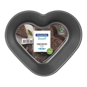 Forma para Bolo Coração Tramontina Brasil Grafite em Alumínio com Revestimento Antiaderente 24 cm 1,1 L Transforme a aparência dos seus bolos deixando-os ainda mais especiais! Com a Forma para Bolo Coração Tramontina Brasil Grafite em Alumínio com Revestimento Antiaderente 24 cm 1,1 L suas receitas vão ganhar um toque todo especial. Produzida em alumínio com revestimento interno e externo em antiaderente Starflon T1, ela permite um cozimento mais uniforme e evita que o alimento grude na forma. Com 24 cm, pode ser usada em forno a gás e elétricos, além de ir à máquina de lavar louças. Em formato de coração, leva mais criatividade e carinho aonde quer que esteja! Informações Gerais Corpo de alumínio com espessura de 1,0 mm que proporciona cozimento rápido e uniforme. Revestimento interno e externo de antiaderente Starflon T1. O único com a tecnologia T: maior poder de antiaderência; maior resistência à abrasão; maior durabilidade; mais fácil para limpar e livre de PFOA, garantindo uma resistência à abrasão acima de 5.000 ciclos segundo a Norma ABNT NBR 15321:2013. Pode ir à máquina de lavar louças facilitando seu dia a dia.
