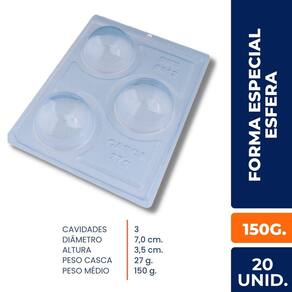 Quantidade: 01 Cavidade: 3 Diâmetro: 70 mm x Altura: 35 mm Peso casca: 27 g Peso médio: 150 g Modelo: Especial (3 Partes)