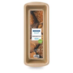 Forma para Pão e Bolo Tramontina Brasil Vermelha em Alumínio com Revestimento Antiaderente 26 cm 1,4 L Existe cheirinho melhor que um pão quentinho saindo direto do forno? A Forma para Pão e Bolo Tramontina Brasil Vermelha em Alumínio com Revestimento Antiaderente 26 cm 1,4 L garante mais praticidade no preparo de suas receitas de pães e bolos! Com 26 cm, é produzida em alumínio com revestimento interno e externo em antiaderente Starflon T1, que permite um cozimento mais uniforme e evita que o alimento grude. Além disso, é fácil de limpar e pode ir à máquina de lavar louças. Pode ainda ser utilizada em fornos a gás e elétricos. Na cor vermelha, leva estilo e bom gosto para sua cozinha! Informações Gerais Corpo de alumínio com espessura de 1,0 mm que proporciona cozimento rápido e uniforme. Revestimento interno e externo de antiaderente Starflon T1. O único com a tecnologia T: maior poder de antiaderência; maior resistência à abrasão; maior durabilidade; mais fácil para limpar e livre de PFOA, garantindo uma resistência à abrasão acima de 5.000 ciclos segundo a Norma ABNT NBR 15321:2013. Pode ir à máquina de lavar louças facilitando seu dia a dia.