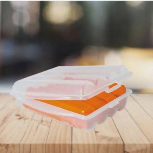 Cor: Transparente Composição: Plástico Tamanho: L:18 cm X C:16 cm X A: 5 cm ( Cabe Salsichas de 15 cm X 2,5 cm )