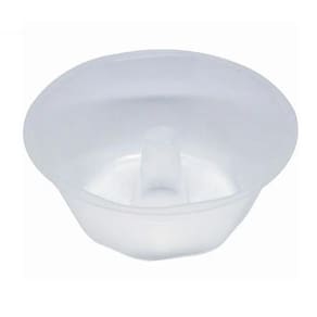 A forma é redonda com tampa e traz maior comodidade e design para pudins, doces e etc.