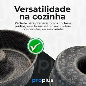 - fabricada com alumínio de alto padrão, esta forma de pudim é incrivelmente resistente e não enferruja rápido, garantindo durabilidade e eficiência no preparo de suas sobremesas.