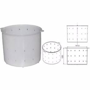 Com as medidas de 14,5cm de largura x 14,5cm de comprimento x 12cm de altura, essa forma é ideal para a produção de queijos frescais de 1kg. Seu peso leve de apenas 95g facilita o manuseio durante o processo de fabricação.