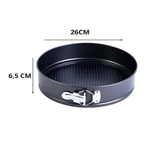 Características: - Tamanho: 6,5cm de altura x 26cm de diâmetro; - Não precisa untar; - Fácil de limpar; - Forma: redonda; - Material: aço. Marca: Não Informado