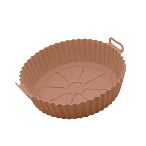 Forma reutilizável de silicone marrom para air fryer, 16cm de diâmetro. Evita que resíduos grudem no cesto, facilitando a limpeza. Fabricada em silicone de alta qualidade, livre de BPA, resistente a altas temperaturas (-40C até 230C), flexível, antiaderente e reutilizável. Possui alças laterais para remoção fácil e segura. Pode ser lavada à mão ou em lava-louças. Não deforma e não solta odores.Tipo
