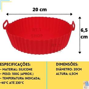 O forro pra fritadeira forma silicone air fryer micro-ondas é um produto indispensável para a sua cozinha. Compatível com air fryer, freezer, microondas e forno, essa forma de silicone é prática e fácil de manusear. Fabricada em silicone de alta qualidade, livre de bpa, ela é resistente, antiaderente, maleável e reutilizável. Além disso, suporta temperaturas que variam de -40ºc até 230ºc, o que a torna perfeita para diversas preparações na cozinha. Com dimensões de 20cm de diâmetro e 6,5cm de altura, essa forma para air fryer possui uma alça que facilita o manuseio e evita acidentes. Ela é leve, pesando aproximadamente 100g, e pode ser facilmente limpa, podendo ser inclusive levada à lava-louças. O forro pra fritadeira forma silicone air fryer micro-ondas não contamina alimentos e não possui toxinas, garantindo a segurança e a qualidade das suas preparações. Além disso, ele não deve ter contato direto com fogo ou objetos cortantes. Esse produto é enviado com cores , trazendo um toque de alegria para a sua cozinha. Com essa forma de silicone, você poderá preparar diversas receitas de forma prática e saudável, sem se preocupar com o alimento grudando ou queimando. Marca: Aline