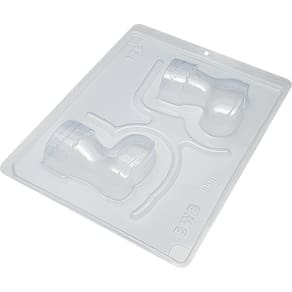 Esta é a forma perfeita para garantir a facilidade em seu trabalho e economia em sua receita São duas formas de acetato com uma forma de silicone entre elas, permitindo fazer que você faça bombons sem ter que fazer diversas camadas de chocolate. Coloque o chocolate apenas 1 vez, até a medida indicada em cada cavidade É fácil demais , leve à geladeira e já já estarão prontos para receber os recheios, use a criatividade para fazer recheios deliciosos e ganhe dinheiro já Tamanho que cada bota ficará Altura: 7,5cm Largura: 5cm Comp.: 63 x Larg.: 35 x Alt.: 8 Peso Casquinha: 40g Peso Médio: 80g Conjunto Fotos retiradas com permissão dos donos. Ean: 7898559648254 Marca: Não Informado