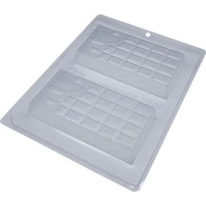 1 - forma barra derretida bwb Contém: 2 forma s rígida s , e 1 lâmina s em silicone flexível na embalagem; Características: Material: acetato e silicone; Peso casquinha: 65g Peso médio: 260g Dimensões- Comprimento: 14cm Largura: 7cm Altura profundidade: 1,7cm Modo de utilizar: Coloque o chocolate na primeira forma, até a marquinha que vem descrita; precisando do auxílio de uma colher apenas para colocar o chocolate na forma sem fazer sujeira. Em seguida coloque a outra parte da forma já com o silicone dentro da primeira que está com o chocolate e aperte levemente para que as formas fiquem bem juntas; leve a geladeira por aproximadamente 12 minutos para que o chocolate fique firme, depois retire a forma da geladeira, e com cuidado retire o chocolate e o silicone de dentro, pegando a casquinha pronta do seu pão de e colocando de novo dentro da forma e colocando o recheio no sabor que for de sua preferência, e quando já tiver bem preenchido com recheio, colocar por fim o chocolate derretido para fazer a base. Leve a geladeira até que fique bem firme, e pronto. Retire da sua forma e sirva Obs: antes e após o uso da sua forma limpe-as com pano umedecido em água morna. Deixe secar. Nunca use detergente, sabão ou bucha. Atenção: limpe a sua forma bwb entre um processo e outro apenas com papel absorvente. Mantenha as embalagens fora do alcance de crianças. Conservar fora da luz solar e não expor a temperatura superior a 50ºc. Marca: Não Informado