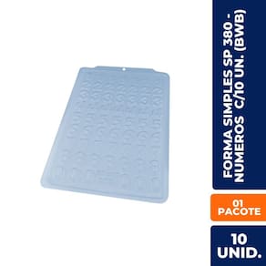 A forma simples SP 380 da BWB com números de 0 a 9 é perfeita para criar chocolates personalizados para aniversários, datas comemorativas, eventos corporativos e lembranças temáticas. Feita em plástico transparente de alta qualidade, permite excelente definição nos detalhes e fácil desmolde. Ideal para confeiteiros, chocolaterias e artesãos que desejam agregar valor e criatividade às suas produções. Reutilizável e prática, essa forma é uma excelente opção para personalização rápida e com ótimo acabamento.