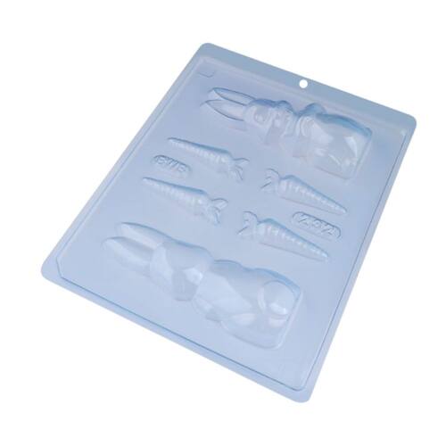 ESPECIFICAÇÕES: Formato: Coelho com Cenoura Quantidade: 10 unidades Tipo: Forma Simples Tradicional Material: Plástico rígido, fácil de usar e limpar Indicação: Chocolates, bombons, trufas e lembrancinhas temáticas Destaque: Praticidade e charme para suas criações artesanais