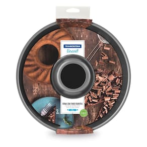 Forma Tramontina Brasil Grafite em Alumínio com Revestimento Antiaderente com Fundo Removível 26 cm 3,3 L Bolos e tortas vão ganhar uma cara nova com a Forma Tramontina Brasil Grafite em Alumínio com Revestimento Antiaderente com Fundo Removível 26 cm de diâmetro 3,3 L. Prática e muito fácil de usar, possui fundo removível que facilita o manuseio e torna a hora de servir muito mais prática. Na cor grafite, possui tamanho de 26 cm de diâmetro. É ainda produzida em alumínio com revestimento interno e externo em antiaderente Starflon T1, material de qualidade que permite um cozimento mais uniforme e evita que o alimento grude no fundo. Versátil, pode ser utilizada em fornos a gás e elétricos, além de ir à máquina de lavar louças. Uma peça indispensável para sua cozinha! Informações Gerais Corpo de alumínio com espessura de 1,0 mm que proporciona cozimento rápido e uniforme. Revestimento interno e externo de antiaderente Starflon T1. O único com a tecnologia T: maior poder de antiaderência; maior resistência à abrasão; maior durabilidade; mais fácil para limpar e livre de PFOA, garantindo uma resistência à abrasão acima de 5.000 ciclos segundo a Norma ABNT NBR 15321:2013. Pode ir à máquina de lavar louças facilitando seu dia a dia.