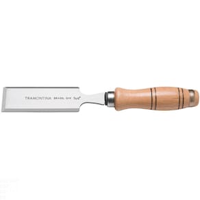 Entalhar e esculpir peças em madeira pode ser muito mais fácil utilizando o Formão Chanfrado 1.1/2 polegadas Tramontina em Aço Cromo Vanádio com Cabo de Madeira. Para deixar seus trabalhos mais caprichados e finos, essa ferramenta é a escolha ideal. O cabo de madeira ergonômico envernizado garante segurança para o operador. A lâmina em aço cromo vanádio temperado e lixado assegura eficácia duração da ferramenta. A camada de verniz ou pintura anti corrosiva que é aplicada sobre as lâminas garante durabilidade e ainda mais qualidade. A resistência em uso intenso é confirmada através de testes de aplicação prática, mostrando que o Formão Chanfrado Tramontina é que há de melhor quando se fala em trabalhos em madeira. Orientações Lâmina em aço cromo vanádio temperado e lixado.Lâmina chanfrada e polida.Cabo de madeira ergonômico envernizado.As ferramentas são submetidas a testes de aplicação prática para garantir sua resistência mecânica em uso intenso.É aplicada uma camada de verniz ou pintura anti corrosiva sobre as lâminas para garantir uma maior vida útil da ferramenta.As ferramentas são produzidas e testadas conforme normas específicas. Características Gerais EAN13 7891114023831 DUN14 17891114023838 NCM 8205.30.00 Peso Líquido 0,1750 kg. Peso Bruto 0,2100 kg. Metragem 0,000705 m³. Dimensões Embalagem (Compr. X Larg. X Alt.) 310x 65x 35 mm. Dimensões Produto (Compr. X Larg. X Alt.) 257x 30x 30 mm. Dimensão Extra A 38,0 mm. Dimensão Extra B 257,0 mm. Dimensão Extra C 30,0 mm. Observações Use óculos, luvas e outros equipamentos de proteção de acordo com a tarefa a ser executada.Mantenha ferramentas de corte longe do alcance de crianças.Mantenha o fio de corte protegido, pois ele é afiado e pode ferir o usuário.Não dobre as lâminas das ferramentas, pois isto pode danificá-las.Armazene em local limpo e seco.