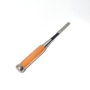 Formão japonês para madeira 9MM 3/8 REF 1201-009. Este formão possui uma lâmina muito afiada e resistente para trabalhos finos em madeira macia ou dura. A lâmina é resultado da arte de unir a melhor combinação de aço com alto teor de carbono laminados em um corpo de ferro macio. Back ground interiço e oco, que reduz a área de contato com a peça e diminui o atrito, resultando em cortes suaves e limpos. O Cabo de Akagashi Oak, carvalho japonês vermelho , madeira de alta qualidade e resistência com anel de aço na extremidade quando se usa martelo para um trabalho fino e pesado. Especificações: Comprimento total : 225 mm Comprimento da lâmina : 65 mm 2-1/2 Largura da lâmina : 09mm 3/8'' Dureza: HRC 63 - 2+- Fabricante: Topman Origem: Japão