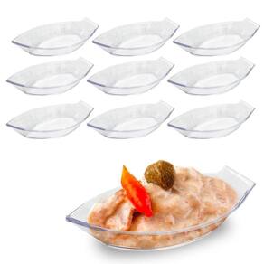 Essas barcas de acrílico também são versáteis, podendo ser usadas para servir diversos aperitivos e molhos, adicionando variedade e surpresa à experiência gastronômica.