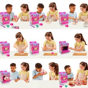 A diversão começa quando você mistura os ingredientes para criar uma massa. Com o molde de massa e a espátula inclusa, você adiciona características faciais adoráveis. É muito fácil! Em seguida, coloca no forno e fecha a porta. Em apenas 90 segundos, você ouvirá um adorável "ding". É hora de abrir o forno e conhecer seu novo amigo!
