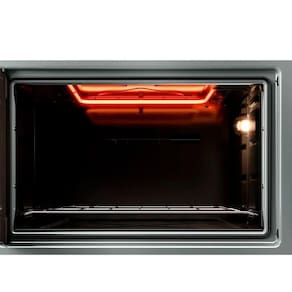 O interior Total Clean é liso, fácil de limpar e resistente. O isolamento térmico inteligente mantém o calor interno eficiente e protege o ambiente externo. A grade ajustável e a bandeja protetora tornam o uso ainda mais prático, recolhendo migalhas e respingos.
