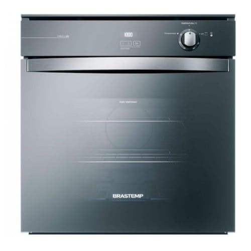 Forno de embutir a gás Brastemp 78 litros com grill e timer touch, design espelhado e 2 prateleirasTimer