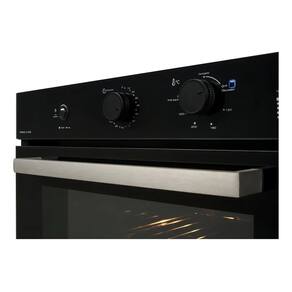 Forno de embutir a gás com grill dourador, timer sonoro e controle de temperatura de 160°C a 260°C. Revestimento interno EasyClean, porta com vidro duplo e sistema de resfriamento interno.Timer