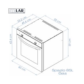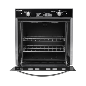 Forno a gás de embutir com capacidade de 85 litros, timer de até 120 minutos e temperatura regulável até 250 graus.Timer