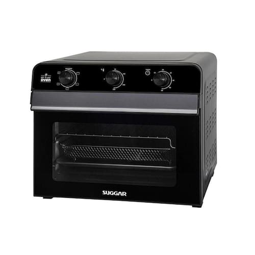 Fritadeira e Forno (2 em 1), Frita sem óleo, assa, doura, gratina e descongela, 6 resistências (4 superiores e 2 inferiores), Luz interna, Função timer 60 minutos com alarme, Função grill, Controle de temperatura de 0°C a 230°C, Forno Easy Clean com revestimento interno antiaderente, Acompanha cesta, bandeja e grelha.Forno autolimpante