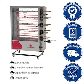 FORNO ASSADOR ROTATIVO ELÉTRICO PROGÁS 380V PR-6100E DUO 10 ESPETOS A GÁS P45780