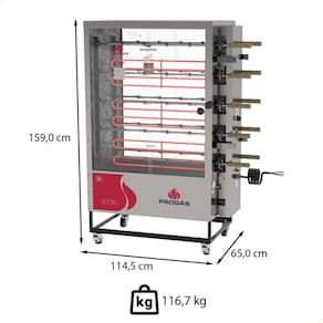 O Forno Assador Rotativo Elétrico Progás PR-6100 E DUO é perfeito para assar carnes de frango, bovina e suína, oferecendo assados uniformes e versáteis, sem misturar sabores.