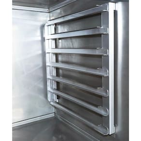 - Porta com vidro duplo de fácil limpeza, equipada com calha removível para