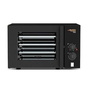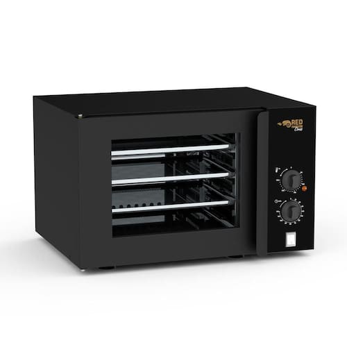 - Gabinete externo em aço pintado; - Gabinete interno em aço inox brilhoso 430; - Equipado com 4 assadeiras perfuradas em alumínio com dimensões de 35x35 cm; - Altura entre suporte das assadeiras de 7 cm; - Painel com ajuste analógico de temperatura e tempo; - Porta vidro reto em vidro simples temperado; - Isolamento térmico em lã de rocha; - Vedação da porta inteiriça, que facilita a higienização e substituição em caso de necessidade; - Garantia de 3 meses legal + 3 meses de garantia contratual; - IMPORTANTE: Não pode ser substituído.