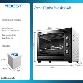 tambem em estante ou prateleira. Informacoes tecnicas: Marca: Best Modelo: FORNO 48LT PLUS Cor: Frente Preta e
